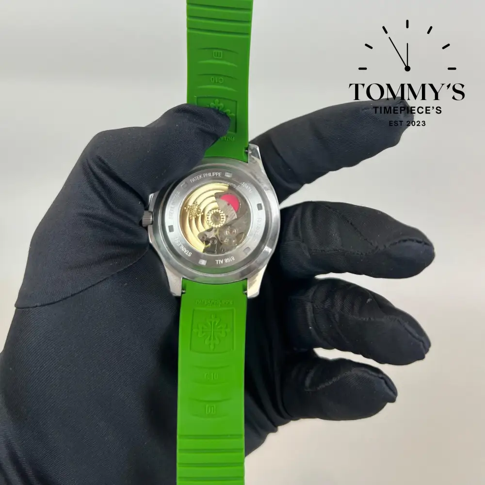 AAA+ Aquanaut, 40.8mm Khaki Green Embossed Dial-Rubber Strap (Metallic Silver Bezel)