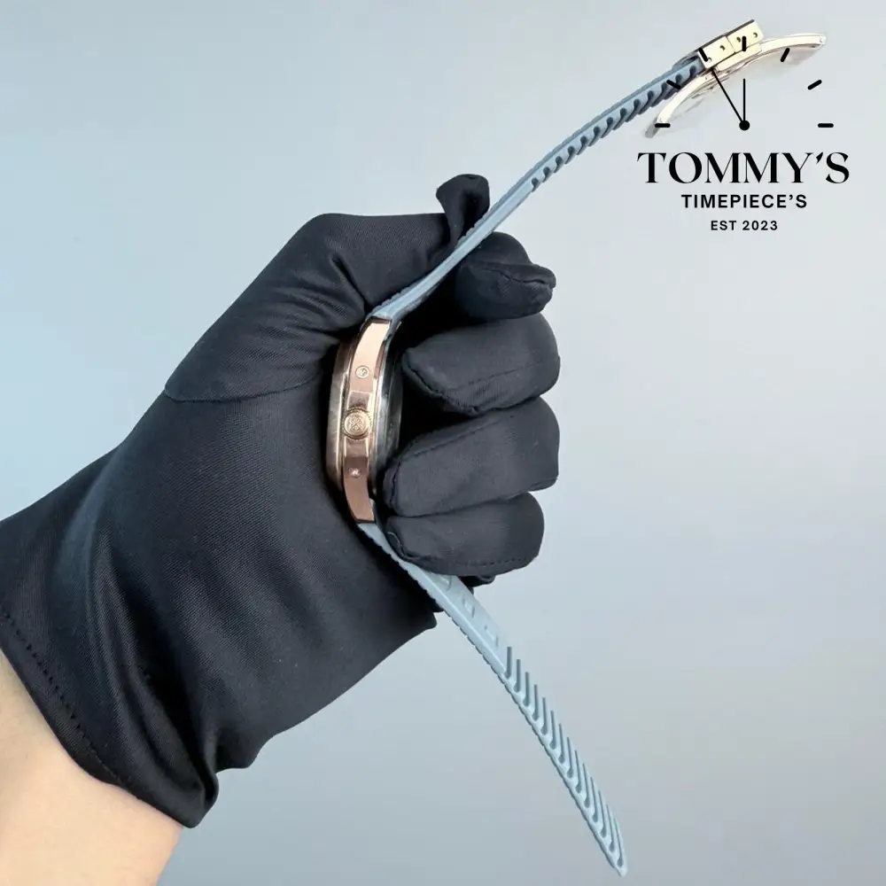AAA+ Aquanaut Luce Annual Calendar, 40mm Blue Gray Dial-Rubber Strap (Rose Gold Bezel)