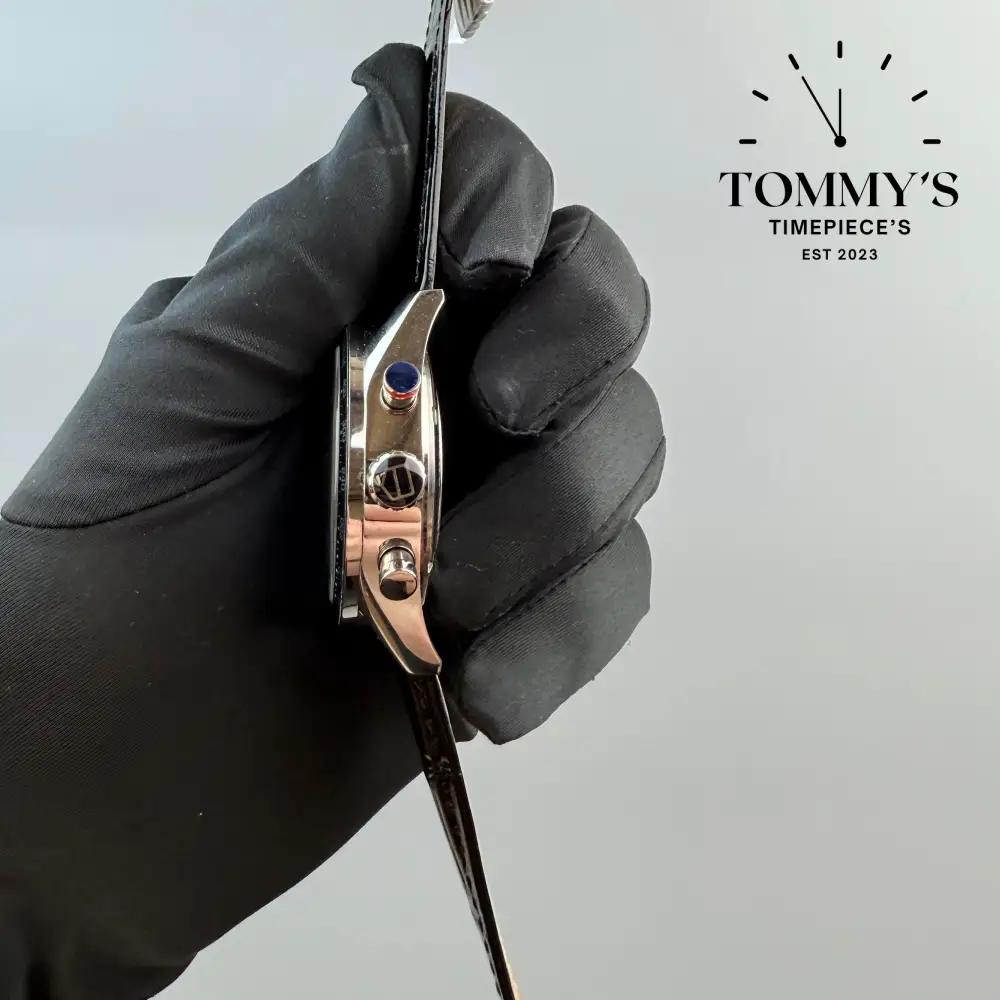AAA+ Carrera Chronograph, 44mm Black Dial-Black Leather Strap (Black Bezel)