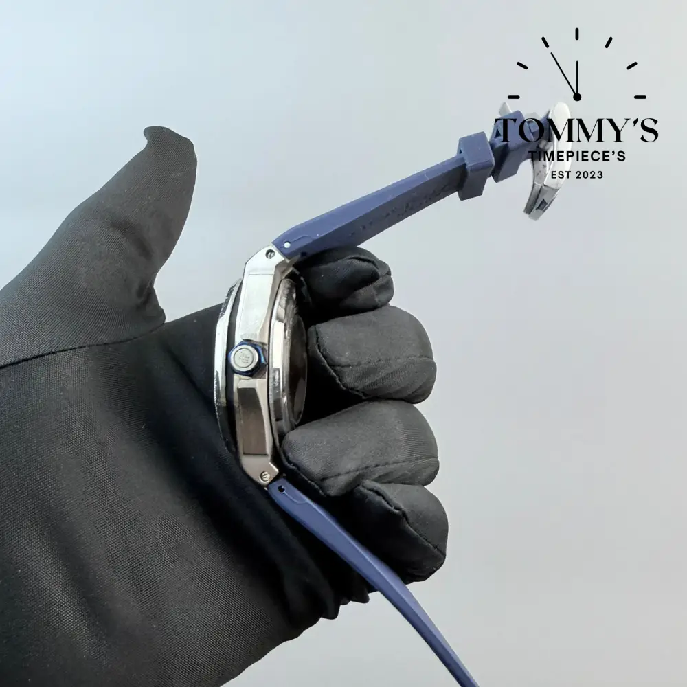 Clone Royal Oak Offshore, 42mm Blue Dial-Rubber Strap (Silver-Colored Bezel)