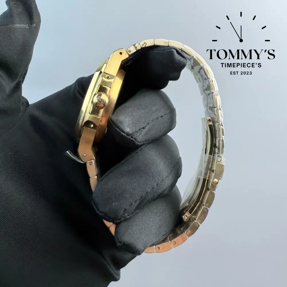 Yellow Gold Nautilus, (3800/001) 40mm Black-Solid Stainless Steel Bracelet (Rounded Octagonal Bezel)