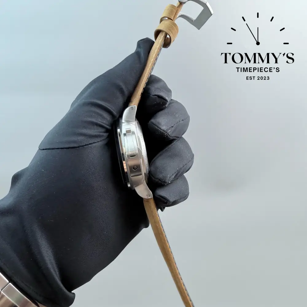 Clone Luminor, 44mm Black Dial-Leather Strap (Silver Bezel)