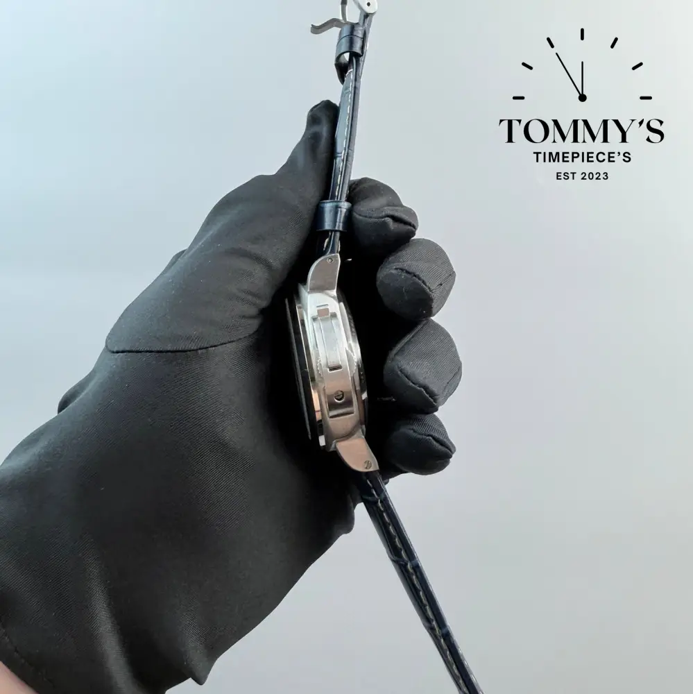 Clone Luminor, 44mm With Titanium Blue Dial-Blue Leather Strap (Grey Titanium Bezel)