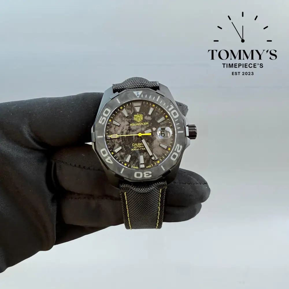 Superclone Aquaracer Carbon Edition [Boxed Set], (WBD218A.FC6445) 41mm Carbon Grey Dial-Black Leather Strap (Black PVD Case)